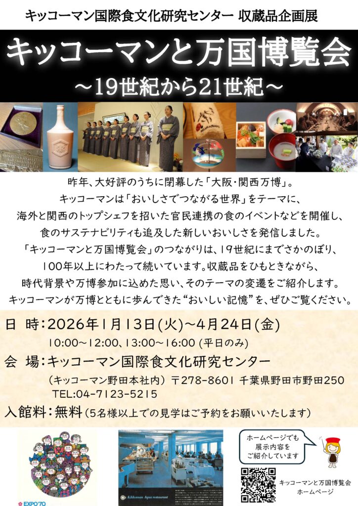 キッコーマン国際食文化研究センターでは、4月24日(金)まで、キッコーマンと万博をテーマにした収蔵品企画展を開催中です。
