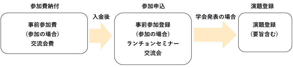 - 事前参加登録および演題登録受付時に「入金日」「振込人名義」「入金額」の登録が必要です。